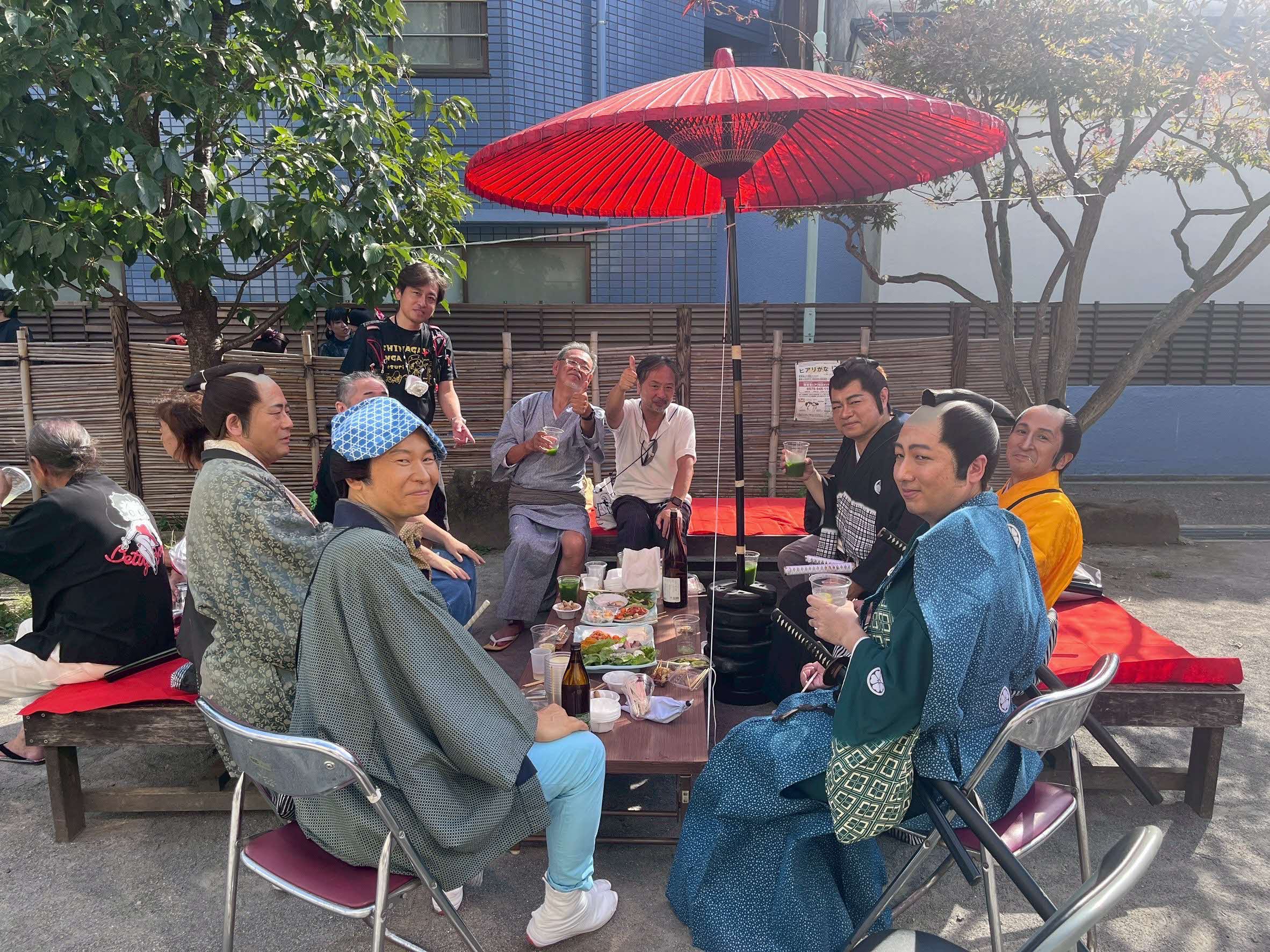 当日は、街道松の広場にて、焼き鳥・焼きそばの提供など、地域の方々との交流はもちろん、宿場まつりの交通パレードに参加された江戸装束をきた方々も一緒になって、一気にタイムスリップした雰囲気になりました。