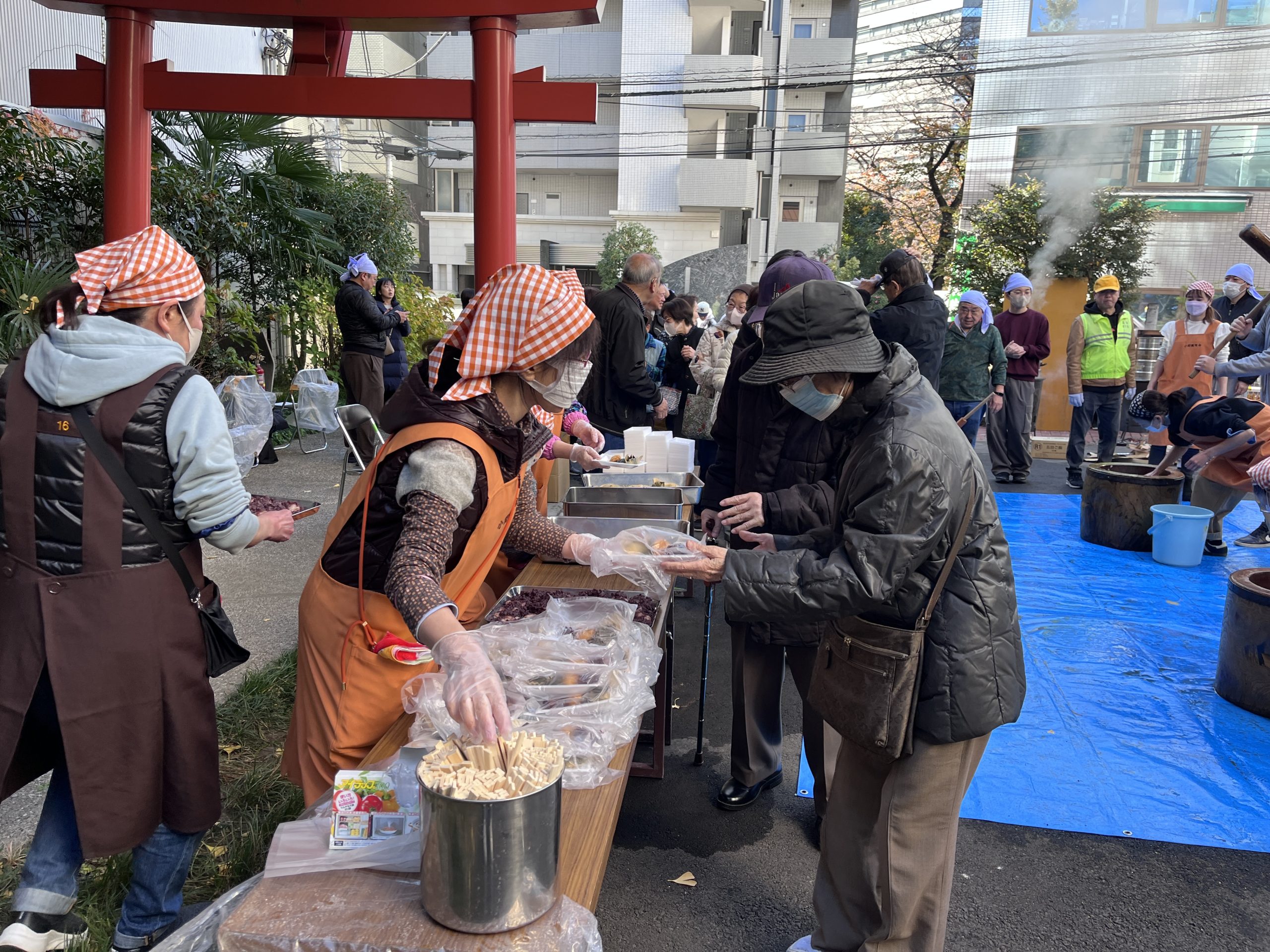 お餅を受け取るための列や餅つき体験の列も出来るほどの大賑わい。